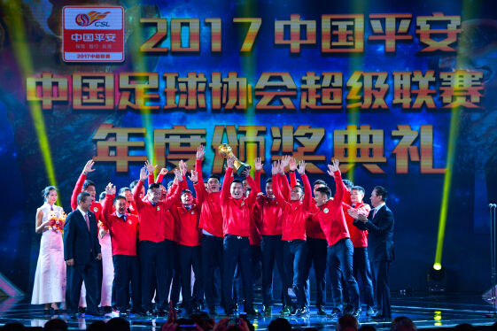 11月11日,2017中国平安中超联赛年度颁奖典礼在重庆举行。颁奖仪式上,平安集团资深副董事长孙建一为实现中超七连冠的广州恒大淘宝队颁发火神杯,并为最佳阵容颁奖。同时,凭借对中超联赛的长期支持和合作,平安集团荣获“2017中国平安中超联赛合作伙伴奖”。